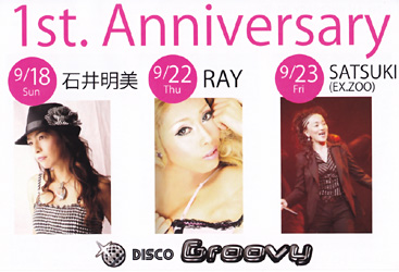 横浜(馬車道・関内)のDISCO Groovyさんの1周年の三夜連続アニバーサリーイベントにゲストでお呼びいただいてミニライブをさせていただくことになりました★